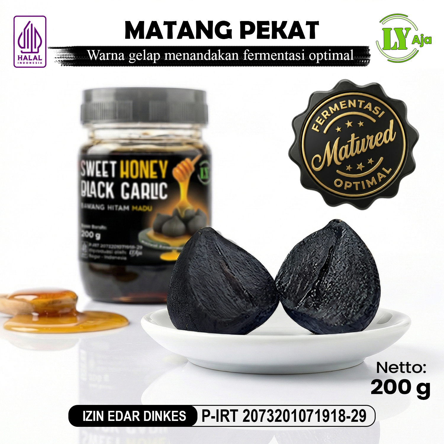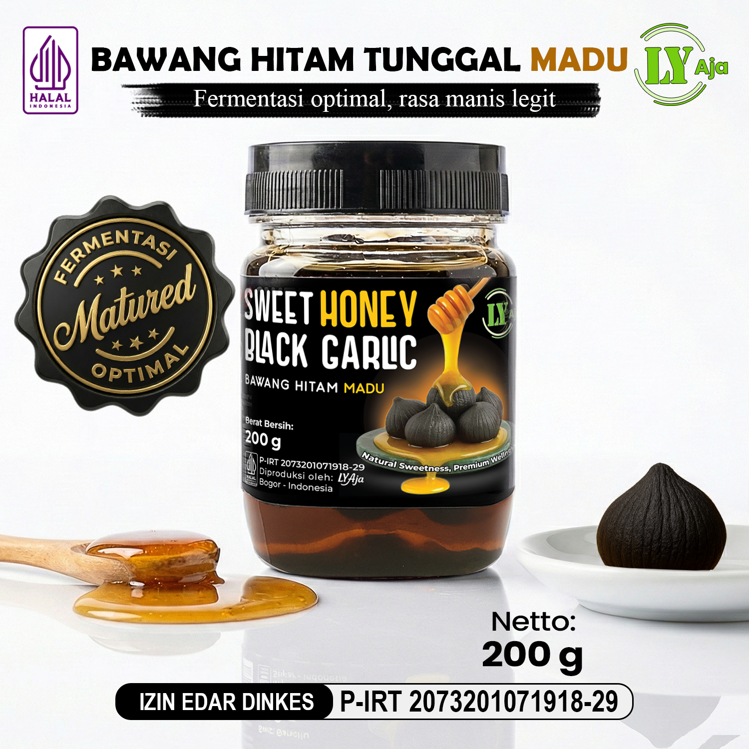 Hadirkan kebaikan alam dalam rutinitas harian Anda dengan Bawang Hitam Tunggal Madu (Sweet Honey Black Garlic) dari LY Aja. Produk ini merupakan inovasi superfood yang menggabungkan bawang hitam tunggal (single clove) hasil fermentasi terkontrol dengan madu murni pilihan.