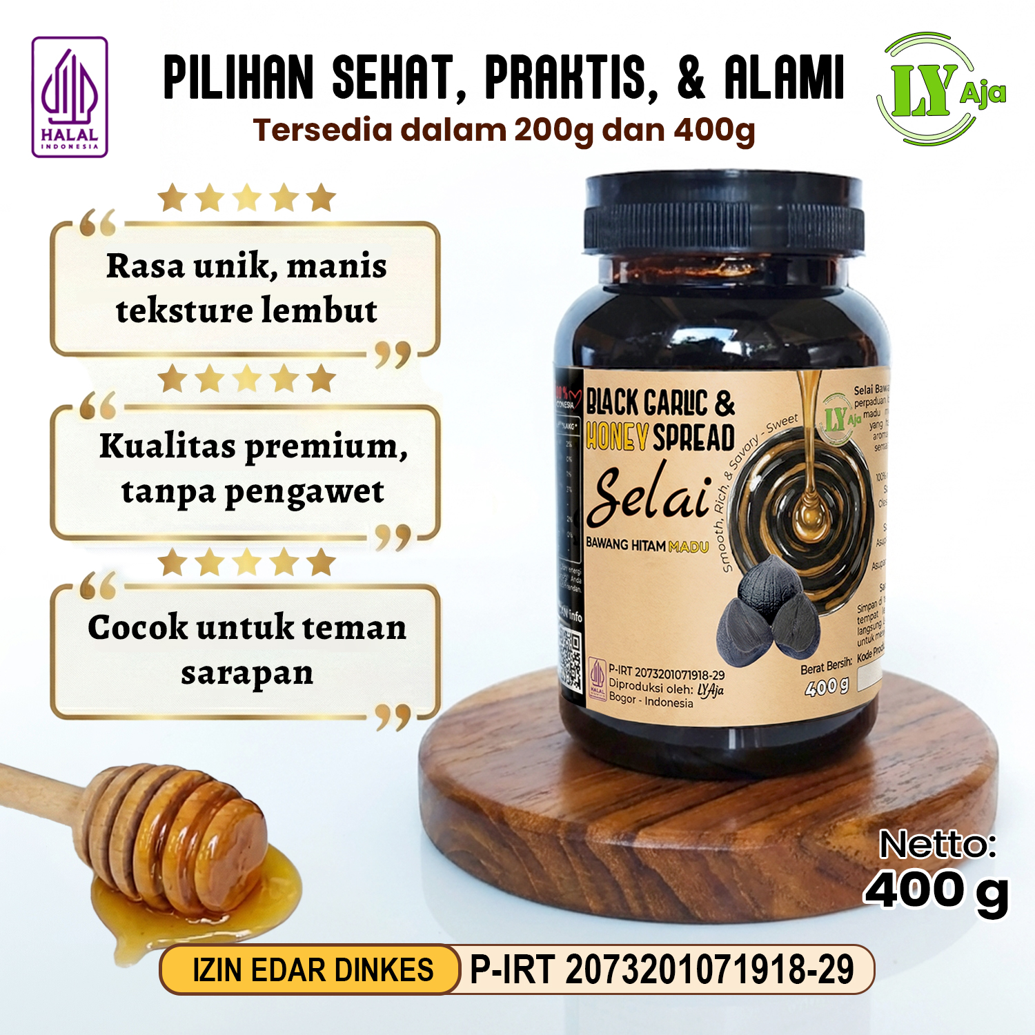 - Tanpa Aroma Menyengat: Proses fermentasi sempurna dan perpaduan madu meminimalisir bau bawang, sehingga nafas tetap segar.